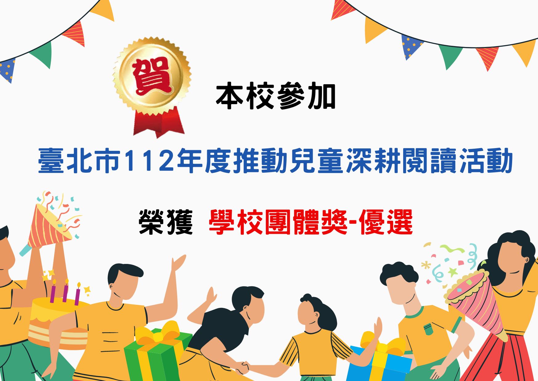 賀 本校參加「臺北市112年度推動兒童深耕閱讀活動」榮獲學校團體獎-優選