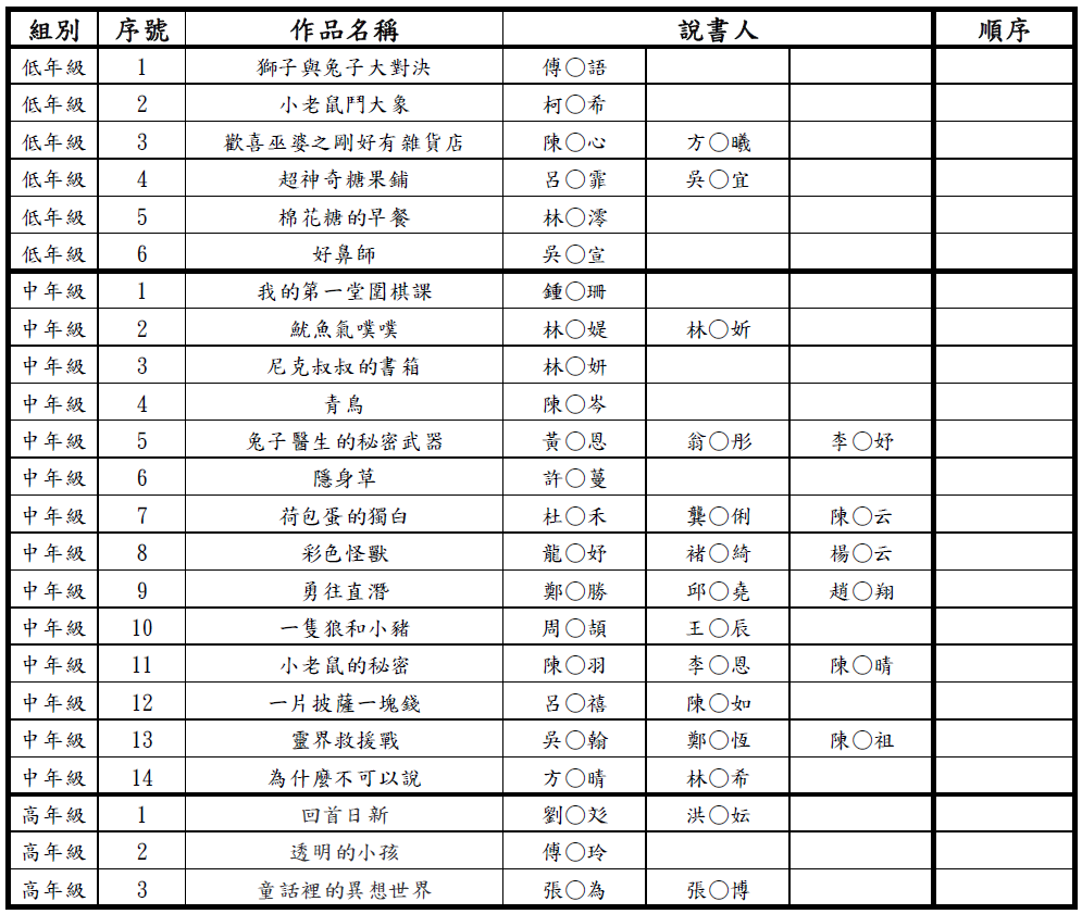 113年度日新「小小說書人」比賽 - 報名成功名單