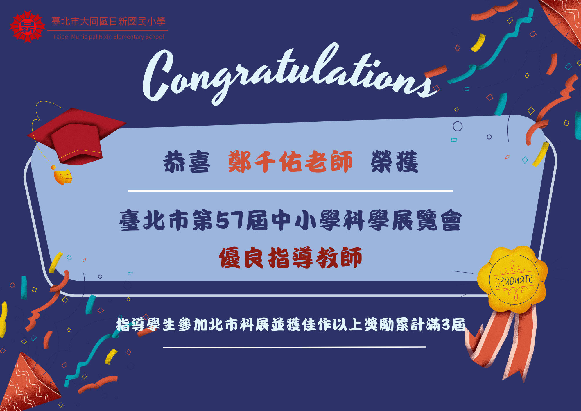 狂賀!!! 恭喜本校鄭千佑老師榮獲「臺北市第57屆中小學科學展覽會-優良指導教師」