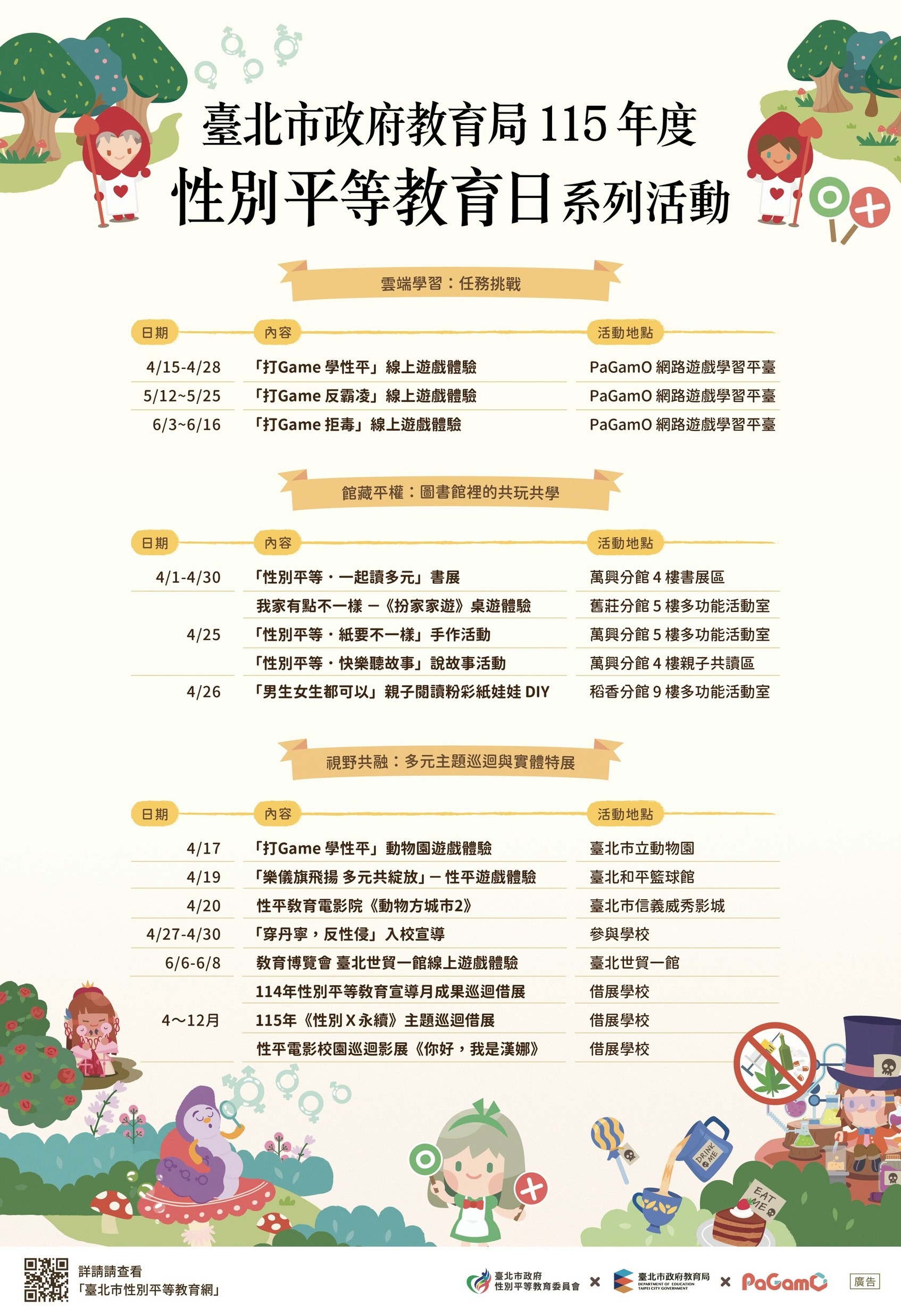 (三)114年性别平等教育宣導月成果巡迴借展、115年《性別X永續》主題巡迴借展,請依本局115年3月27北市教學